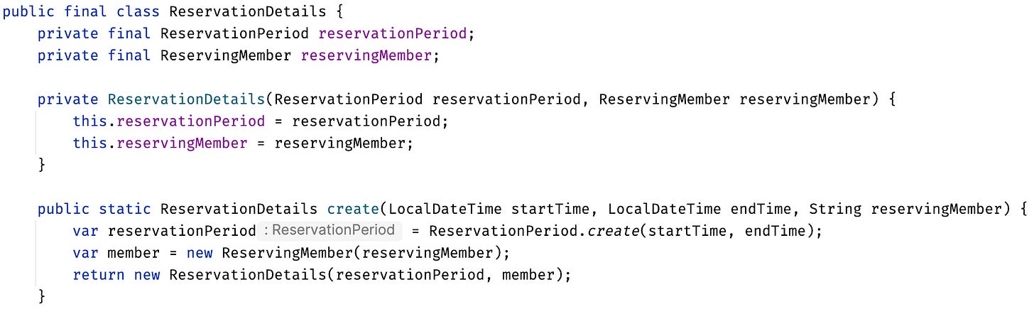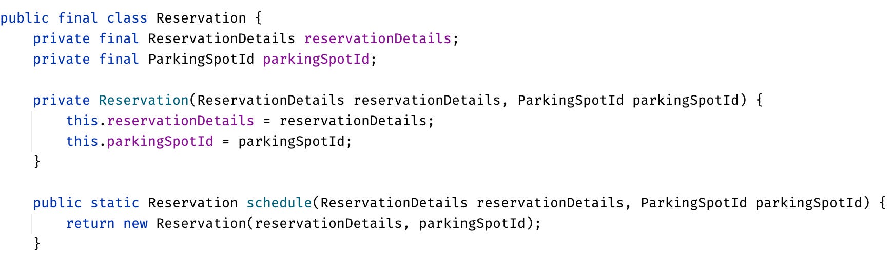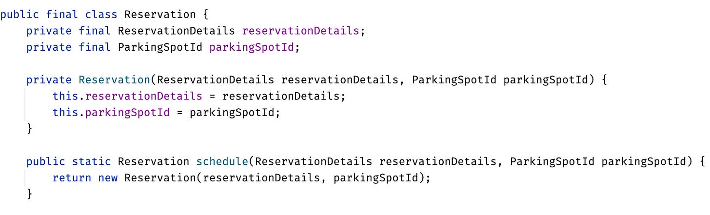An additional refactoring that may seem an overkill initially is to wrap the Reservation class’s constructor into a more domain-specific creation method.