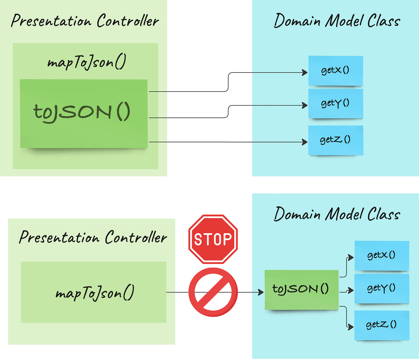 For example, presentation logic should not all of a sudden end up in the business concern just because the presentation controller adapter accesses many fields of an application-concern data structure or domain model to create its output JSON.